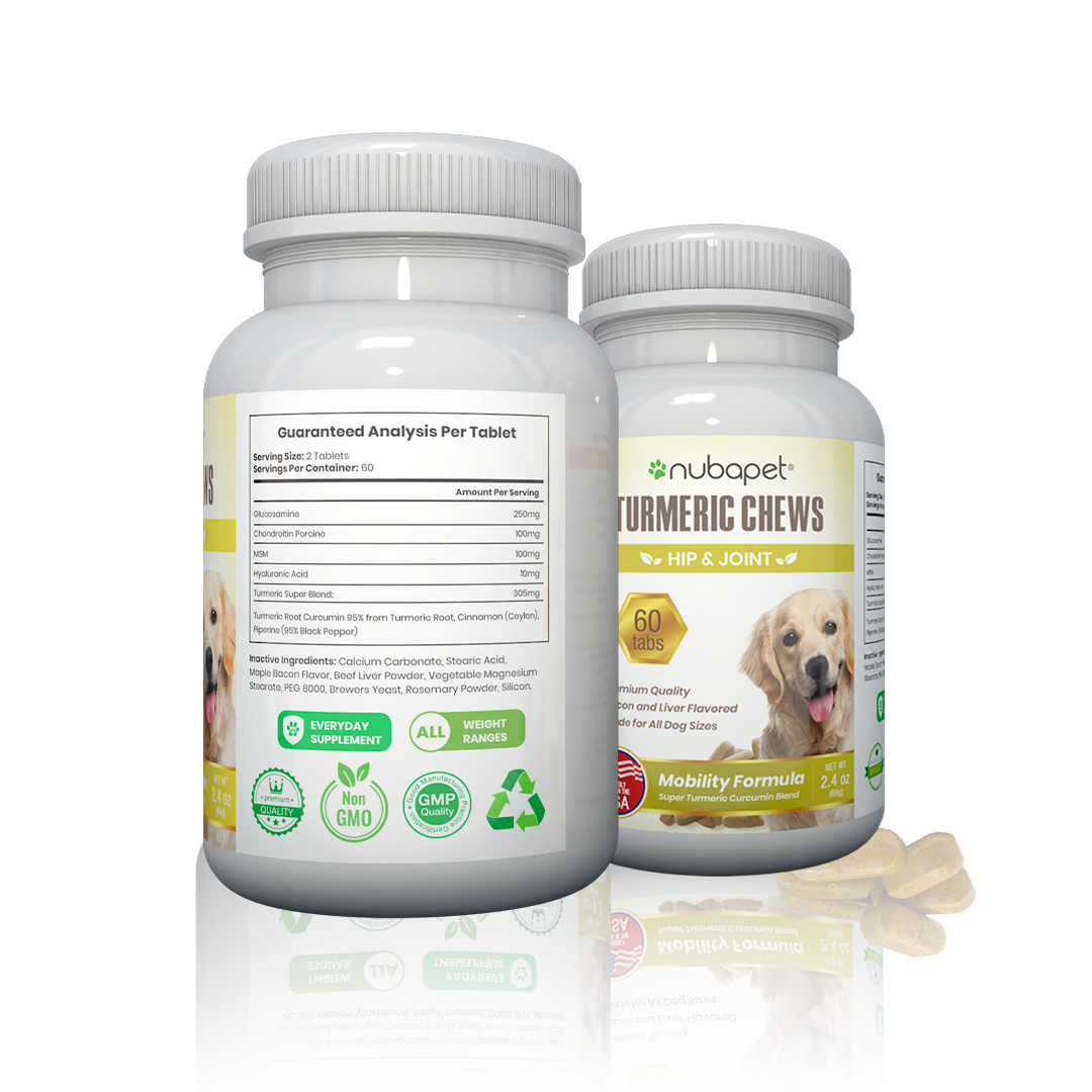 All of the ingredients in Turmeric Chews combine to support healthy joint and cartilage function, which can help put the bounce back in your best friend’s step.